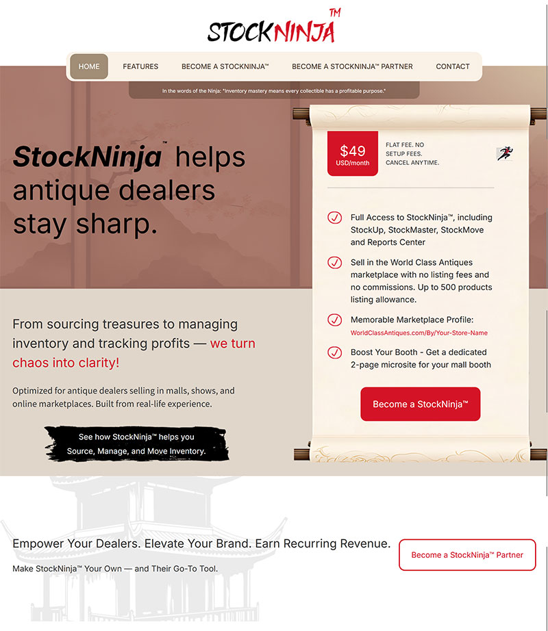 StockNinja™ helps antique dealers, resellers, and multi-location vendors stay sharp. It replaces scattered notes and mismatched spreadsheets with one organized system built for real inventory work. You always know what you have, where it’s located, and how it’s performing.